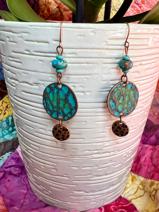 Earrings- Copper and copper plated metal with turquoise beads.