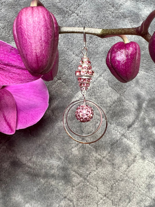 Earrings- Crystal rondelles with round crystal and hoops. Multiple colors available.