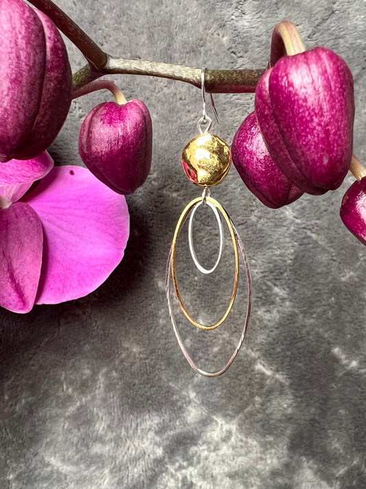 Earrings- Gold and silver plated metal beads, hoops, and wires.