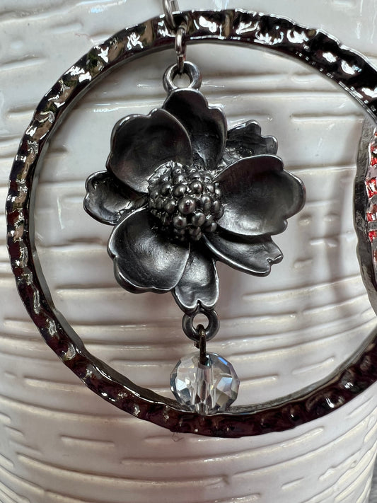 Earrings- Flower shaped plated gun metal with stainless steel ear wires.