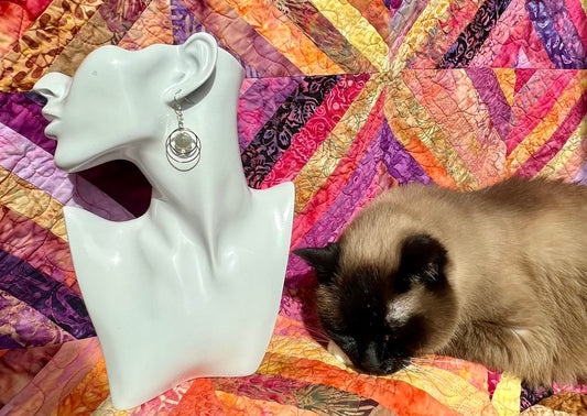 Earrings- Cat shadowing silver plated metal with genuine freshwater coin pearls and small crystals.