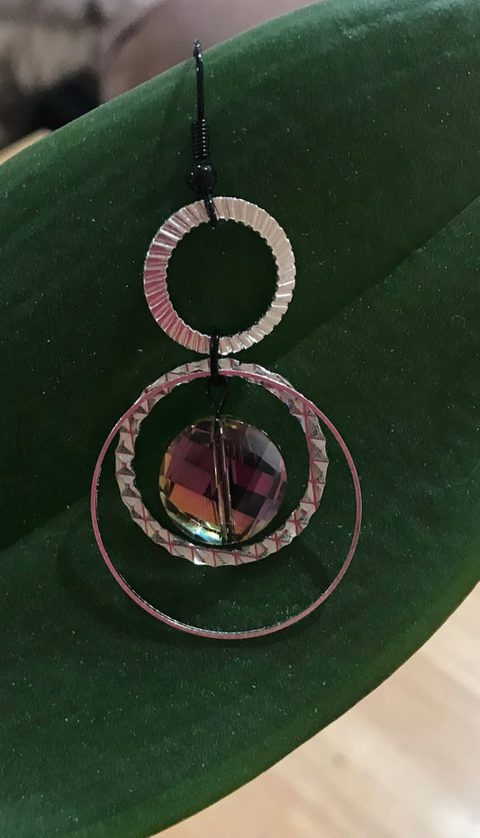 Earrings- Silver plated metal ear hooks and circle rings, with black metal and crystals. Multiple colors available.