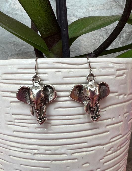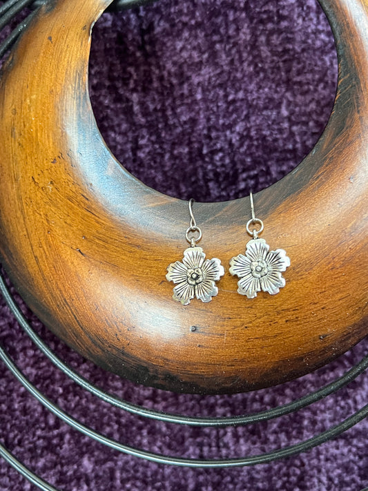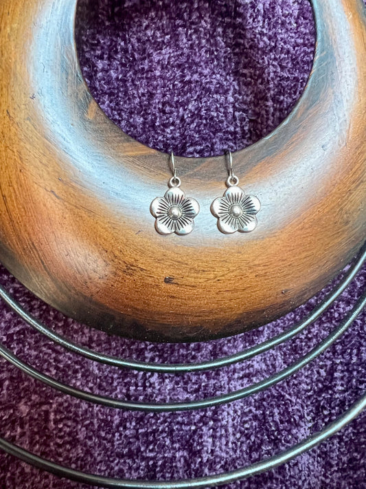 Earrings- Silver plated hooks with antique silver plated metal, round bead, and blue/green glass bead dangle.