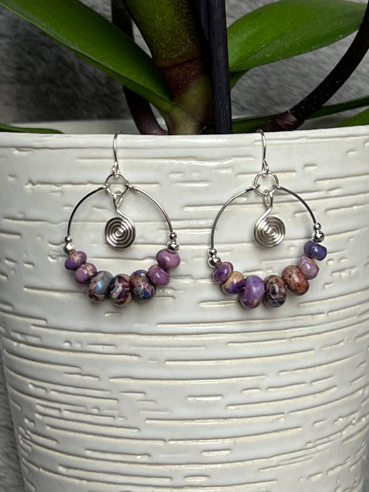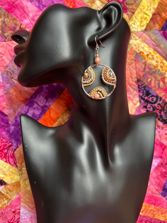 Earrings- Silver plated hoops & wires with silver, gold, and copper plated beads.