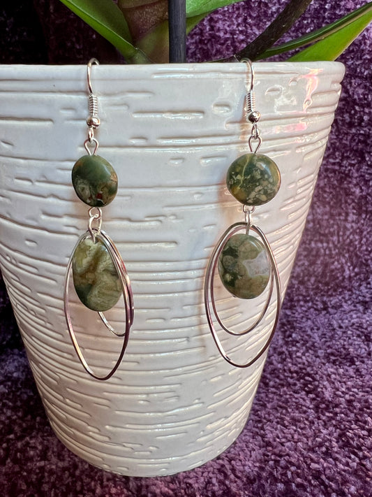 Earrings- Silver plated metal with real genuine Jasper beads.