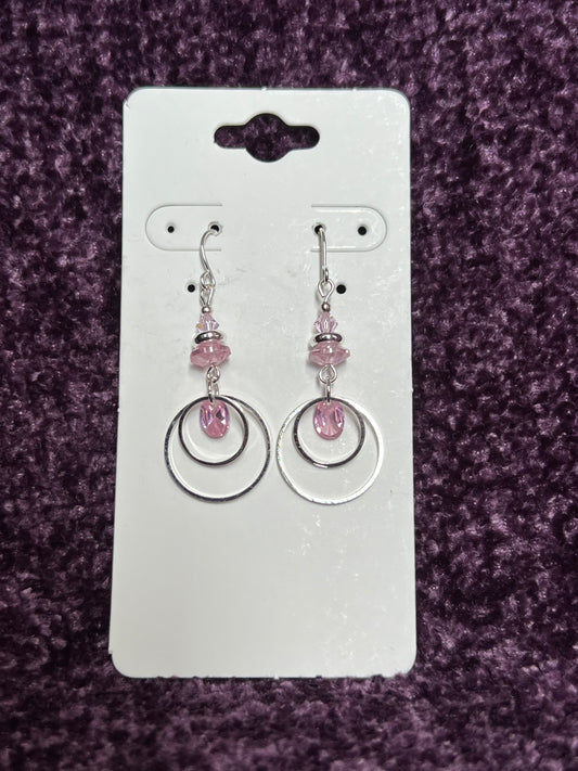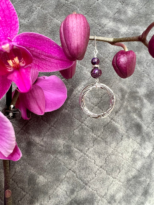 Earrings- Silver plated metal with purple dyed natural stone beads.