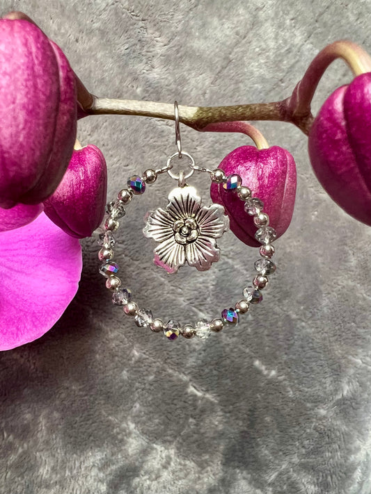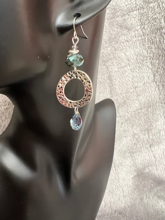 Earrings- Silver plated metal with metallic rainbow coated crystal beads.