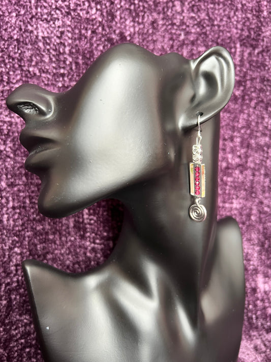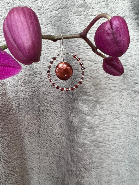 Earrings- Silver plated metal with crystals and burgundy fresh water coin pearls.
