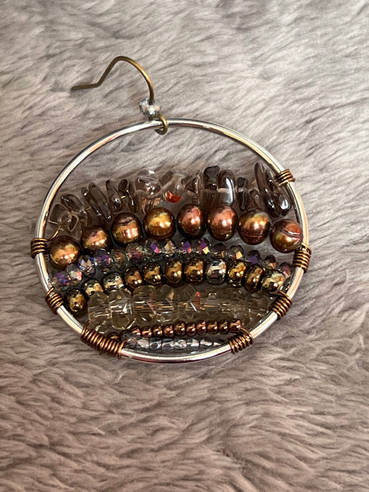 Earrings- Silver plated metal with Smokey quartz, fresh water pearls and crystals.