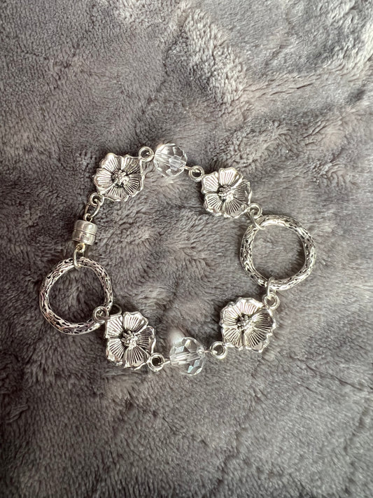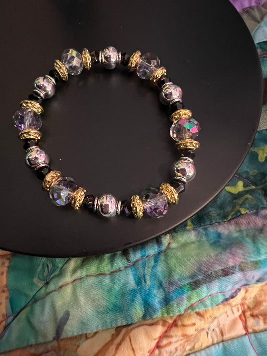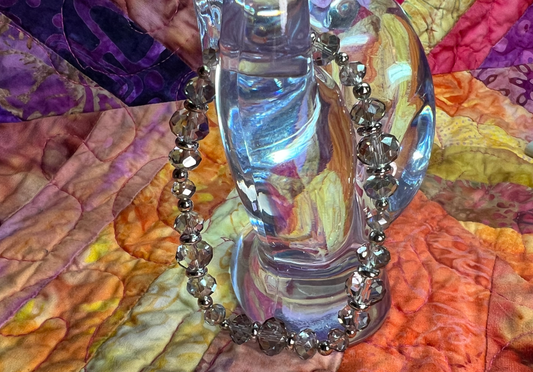 Bracelet- Silver plated metal beads with silver luster crystal beads.