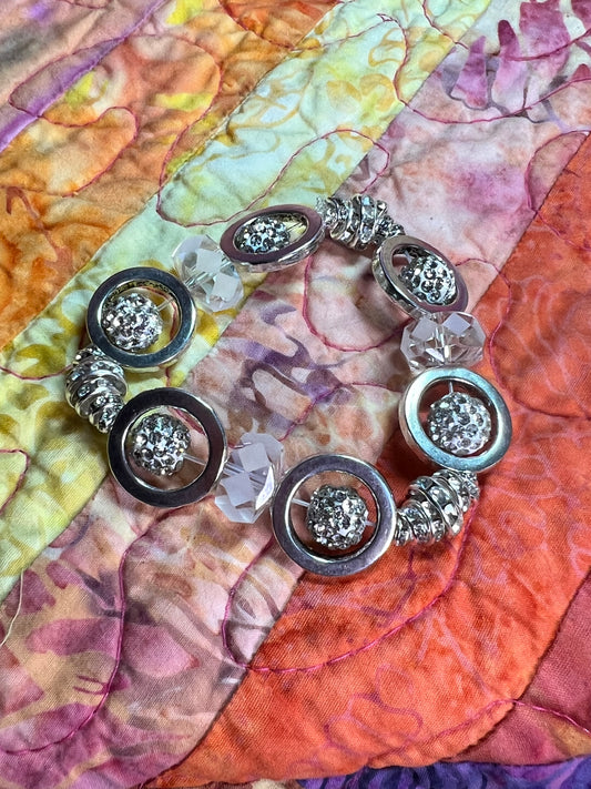 Bracelet- Silver plated metal, clear rondelles, rhinestones, and crystals.