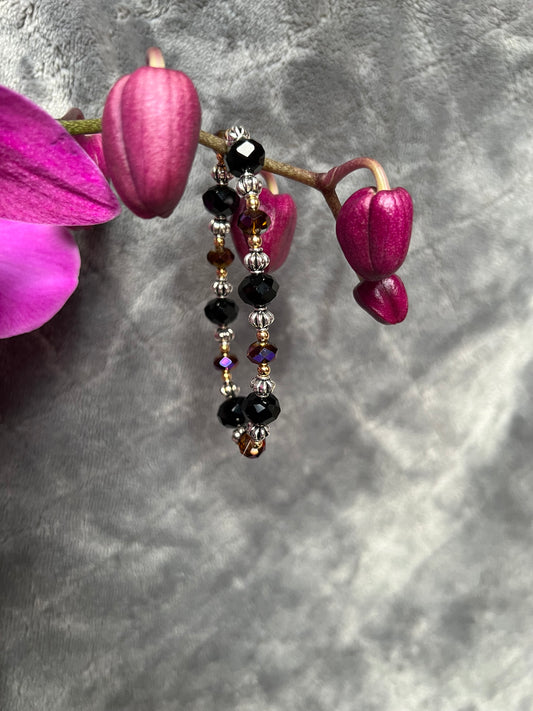Bracelet- Silver and gold plated metal beads with black & brown topaz crystals.
