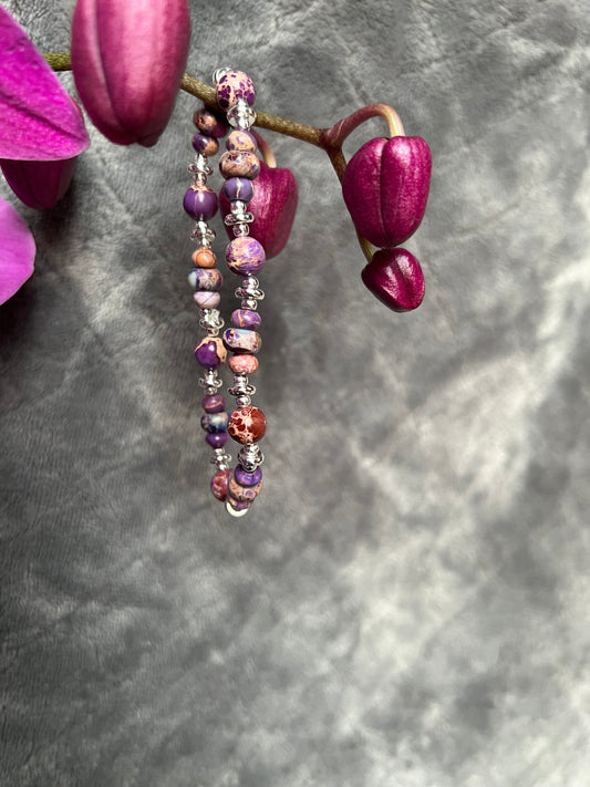 Bracelet- natural stone beads, stainless steel spacer beads, glass beads, and black lava beads for essential oils.
